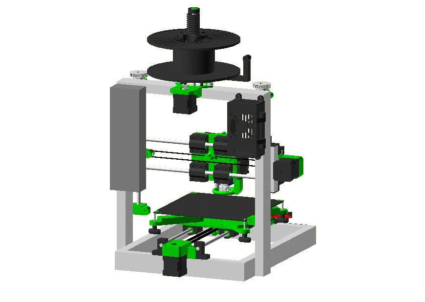 This project presents an open design DIY 3D printer called Green Mamba. Project started as a hobby project and went through several revision displayed in figures below. The first assembled and working version had no printed parts (V1.0) and there was no other 3D printer available. As project went on and printer started working, replacement parts are (self) printed, iteratively improving printer, its reliability, loudness, print speed and quality. The final version (V2.0) uses mostly 3D printed parts and it is based on Bowden setup. Printer parts are designed using OpenSCAD and are easy to print. Some parts are used from external sources (Thingiverse). Printer is based on Marlin firmware and standard RAMPS 1.4 hardware (RepRap).